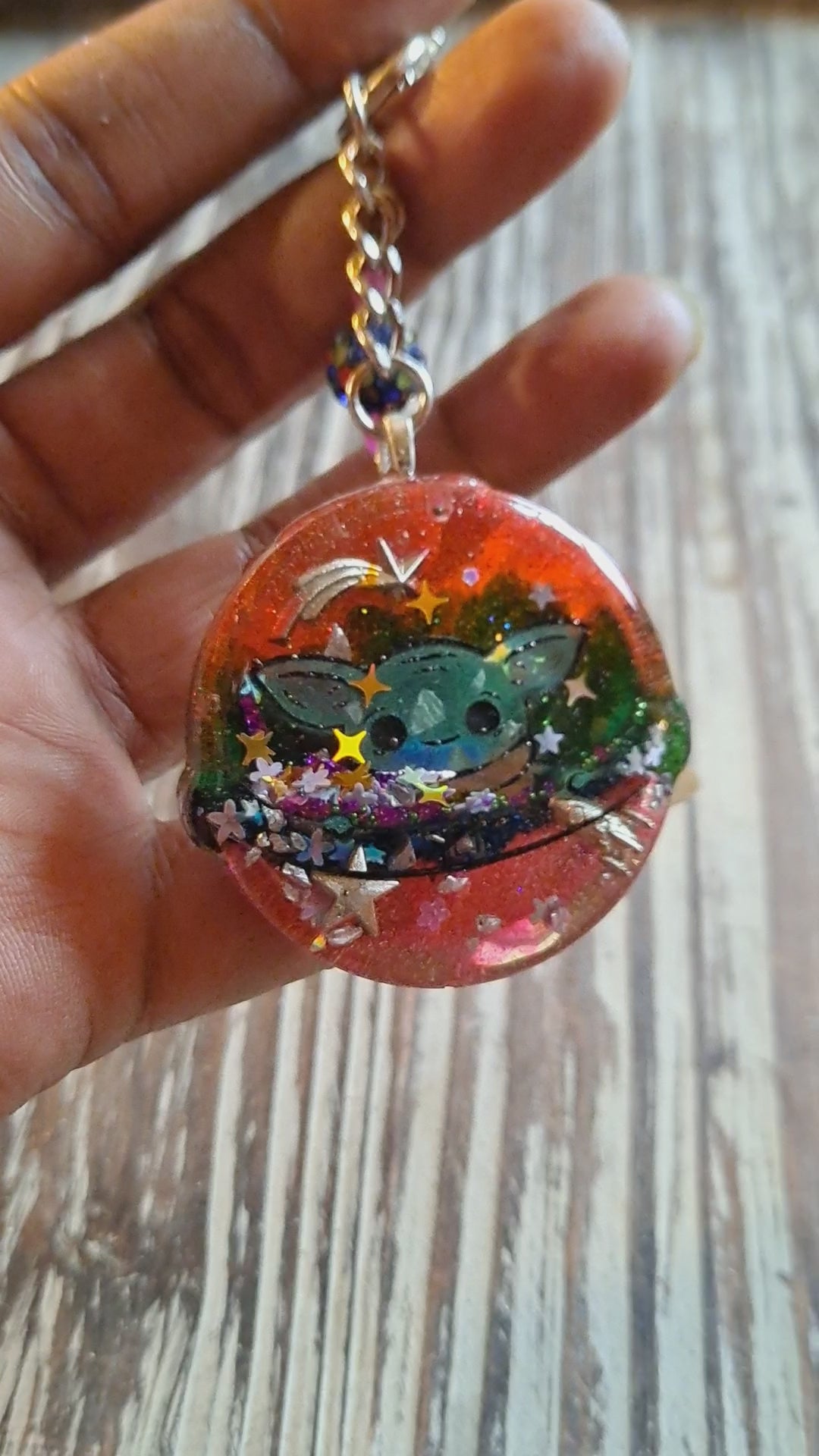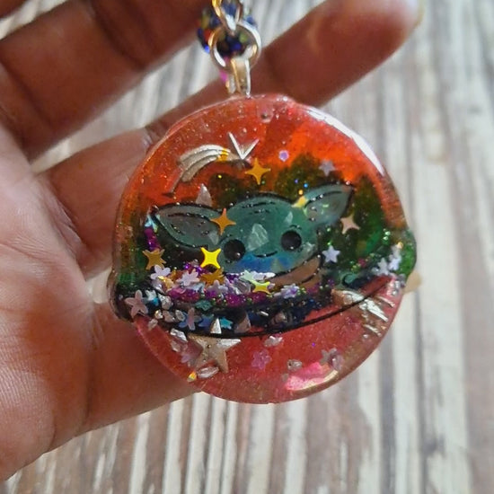 Liquid filled cuteness! Measures approximately 4.5" from the top of the clasp to the bottom of the charm, each piece is handpainted & filled with space themed sparkles & embellishments. Each is one of of a kind! Ready to ship!