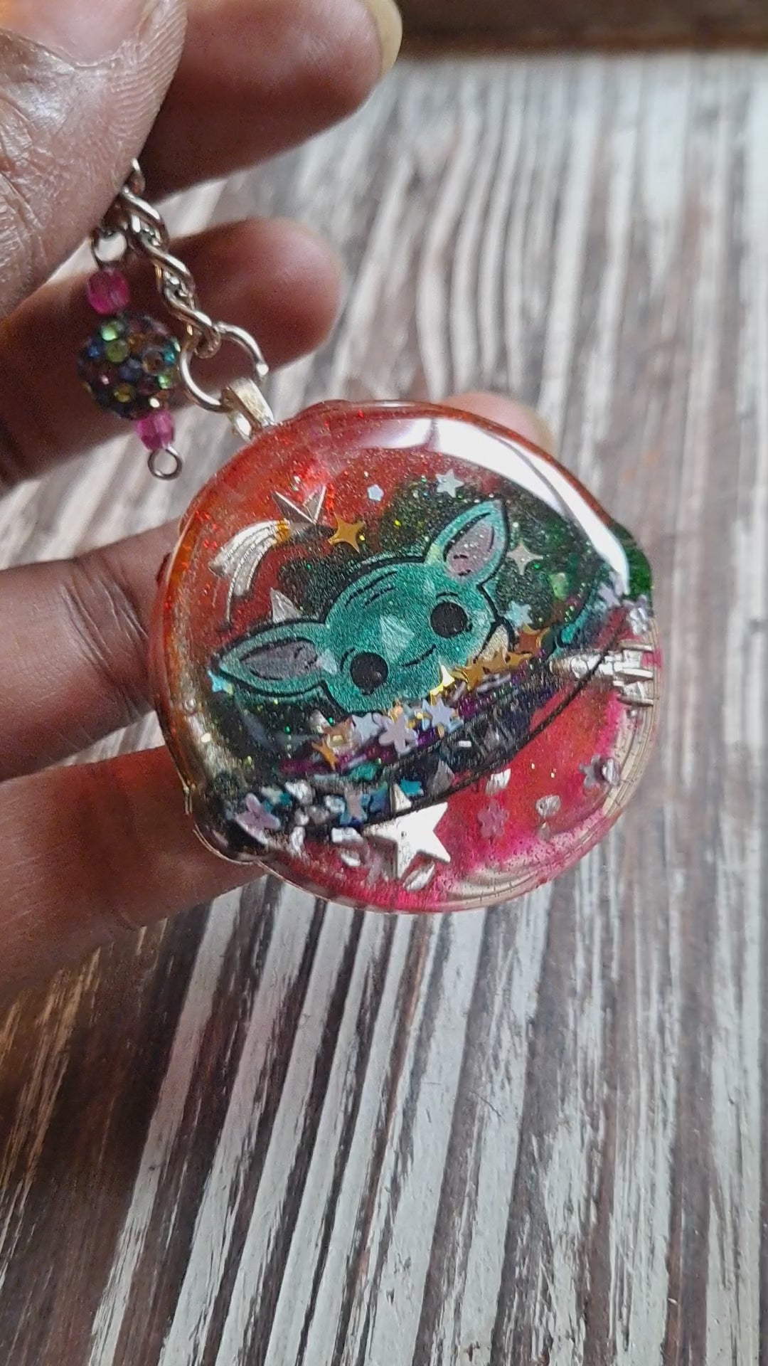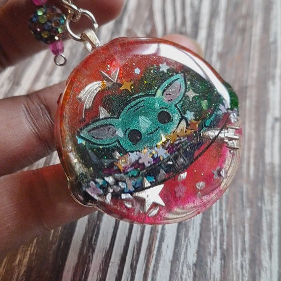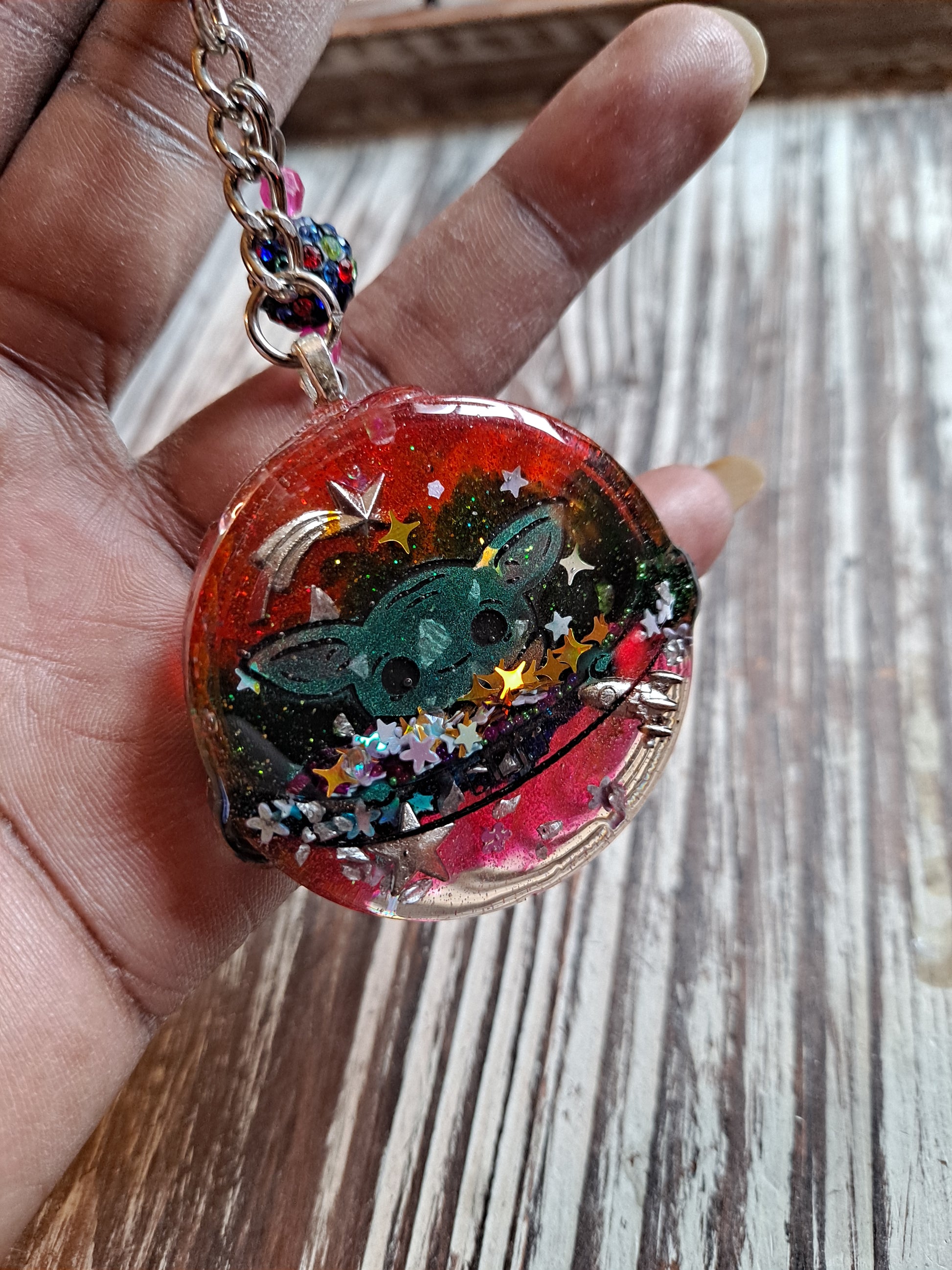 Liquid filled cuteness! Measures approximately 4.5" from the top of the clasp to the bottom of the charm, this piece is handpainted & filled with space themed sparkles & embellishments. One of a kind! Ready to ship!