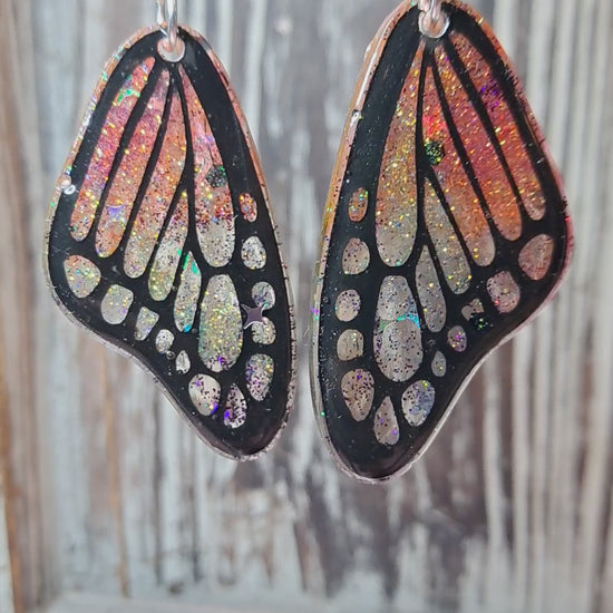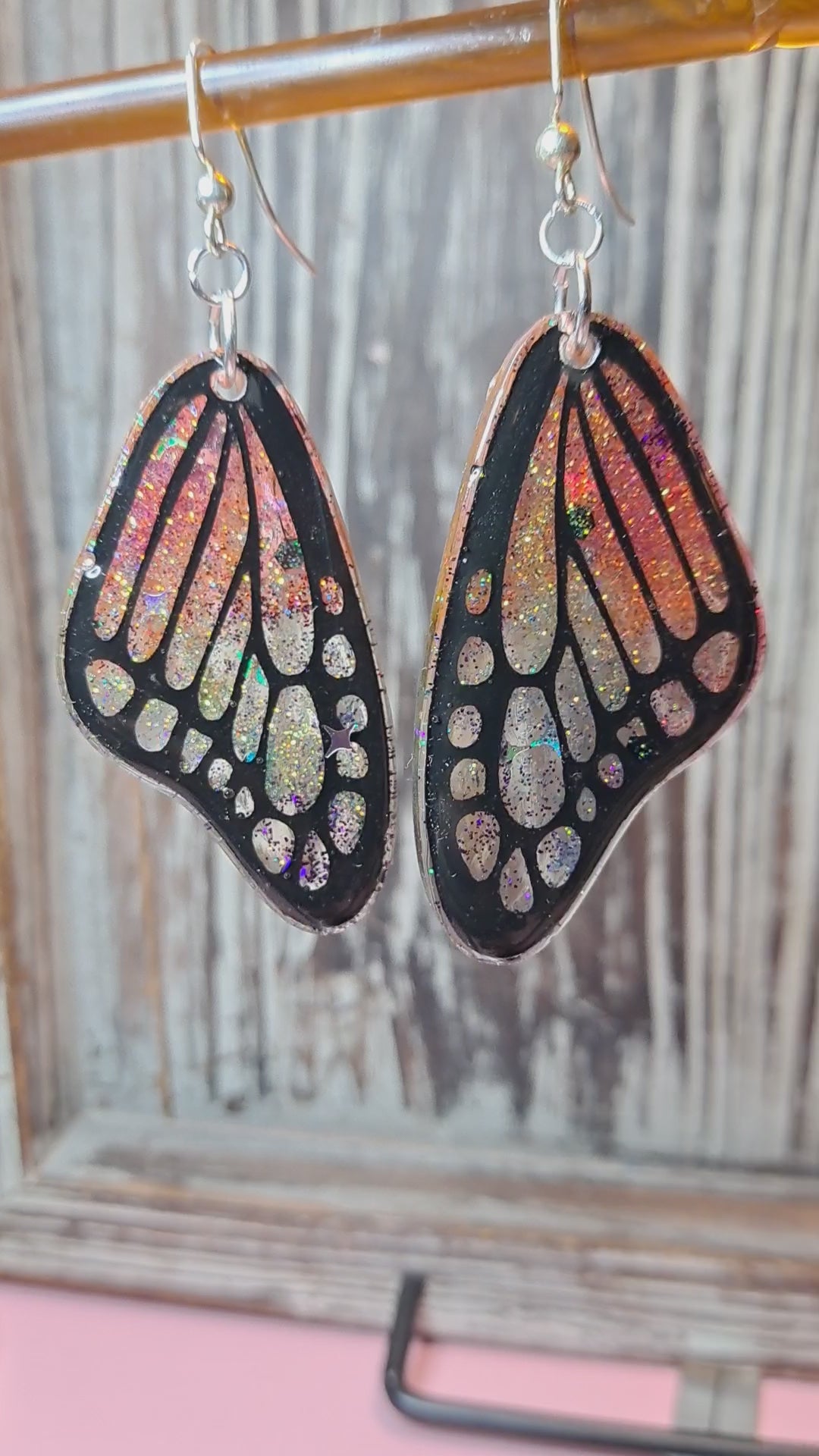 Each measures approximately 3" from the top of the hook, to the bottom of the wing. They are finished with silver hooks. The hooks can be substituted for lever-back hoops. Just make a note at checkout!
