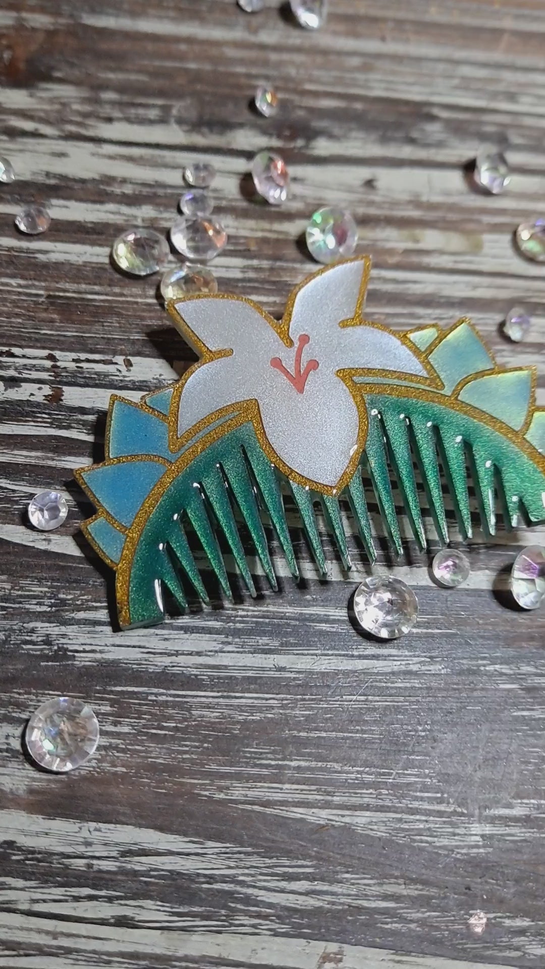These cuties are perfect for bounding or adding a bit of geekery to your outfit. Each comb is hand-painted & finished with a layer of shiny resin. They measure approximately 2" x 3" at its widest points, & the backs are complete with a strong gold alligator clip.