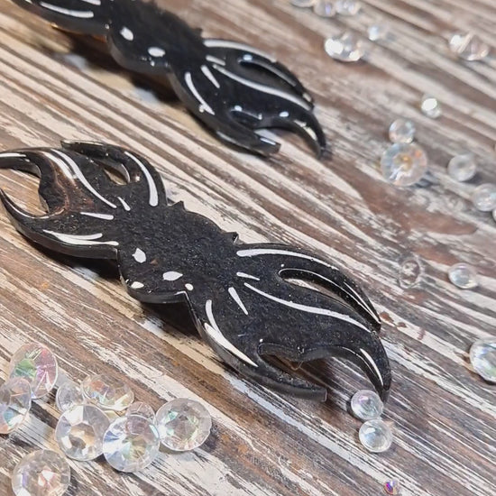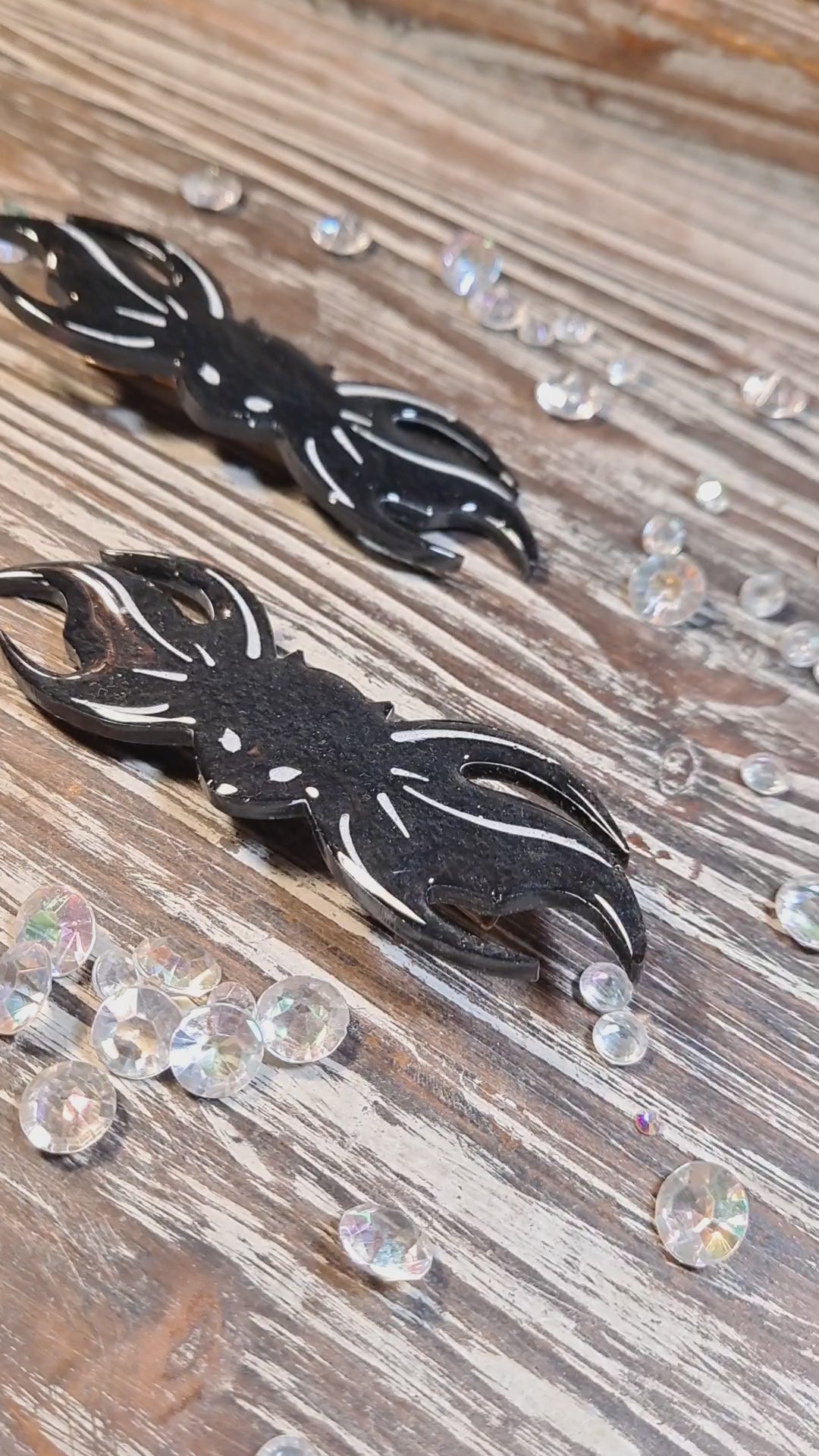 Each clip measures 4" wide x 1.25" tall at its widest points. They are hand made with epoxy, hand painted, & completed with a glossy top coat of uv resin.